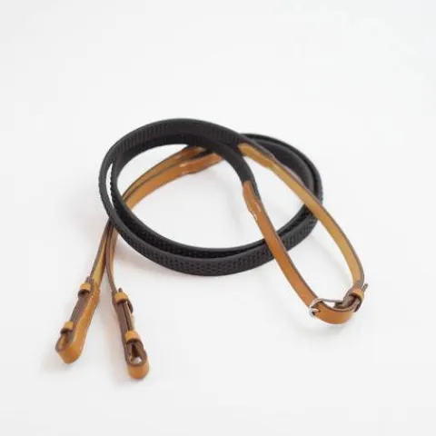 Ce bridon est vendu avec une paire de rênes en cuir et picots nouvelle génération (largeur 20 mm ou 16 mm longueur 1400 mm)