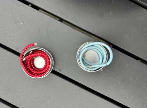 Je vend les élastiques de personnalisation Rouge et Bleu Clair avec puis les noirs sur le casque.