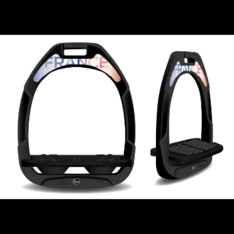 Étriers Flex-on haut de gamme, « made in France », modèle Green Composite 2 entièrement imaginé, conçu et réalisé pour la pratique des sports équestres (cross, CSO, dressage, polo, horse ball, endurance, treck,…).