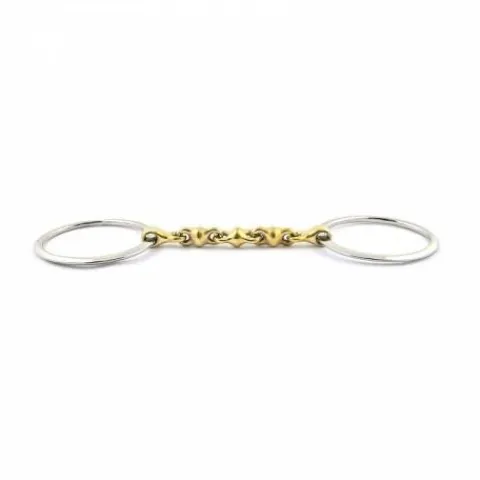 - Efficacité : Les grands anneaux plats du mors permettent un meilleur encadrement du cheval et offrent un léger effet levier. Le canon à boules divise les points de contact, ce qui permet de répartir la pression plus uniformément sur la langue du cheval.