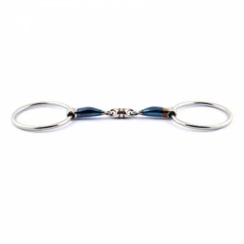 Composition : Blue Steel (54% de carbone et 46% de manganèse). Ce mors à double brisure permet une action directe tout en évitant la pression sur le palais, offrant ainsi un confort optimal à votre cheval. Le matériau Blue Steel s’oxyde au contact de l’air et de l’humidité, développant une fine couche de rouille au goût sucré qui stimule naturellement la production de salive. Une salivation accrue favorise un meilleur contact entre le cheval et son mors. Au fil du temps, la couleur du mors évolue, passant d’un bleu vif à un gris/brun.