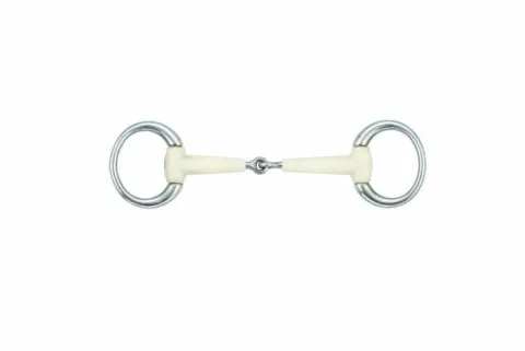 Le mors de bride olives simple brisure de la marque Happy Mouth est conçu pour allier fonctionnalité et bien-être équin. Fabriqué en acier inoxydable et en résine parfumée à la pomme, il s’adapte parfaitement aux besoins des chevaux et des poneys, tout en étant autorisé par la FEI pour les compétitions.