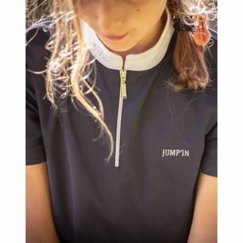 Polo de concours – Charlie Jump’in Modèle manches courtes spécialement conçu pour la pratique du concours hippique. Le polo Charlie est composé d’un joli col officier, d’une fausse poche poitrine sur laquelle on retrouve le logo Jump’in en gris et de manches courtes découpées. Il se ferme par deux un petit zip argenté sous le col. Disponible en blanc, marine et rose 100% micro polyester Il est disponible du 10 au 18 ans Conseil de taille : Ce polo taille normalement, vous pouvez choisir votre taille habituelle. Conseil de lavage : en machine à 30°C, pas de sèche-linge.