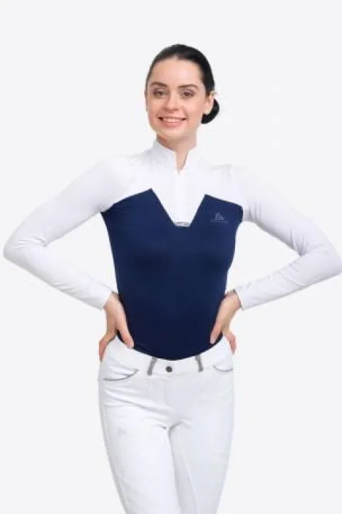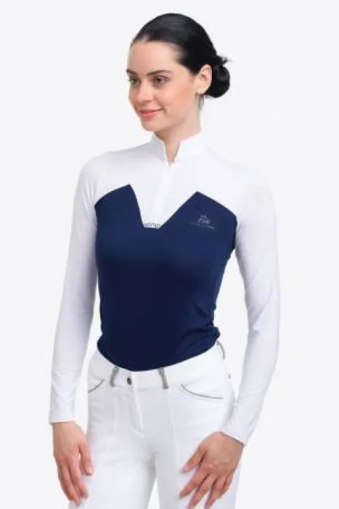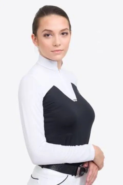 Ce polo de concours équestre, conçu par Cavalliera, est spécialement élaboré pour les femmes qui souhaitent allier féminité et performance lors de leurs activités sportives. Sa conception technique permet une évacuation efficace de l’humidité, tout en offrant un style distinctif grâce à ses détails raffinés.