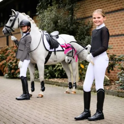 Ce polo est idéal pour les compétitions, offrant à la fois un style raffiné et un confort appréciable durant l’effort. Assurez-vous que votre jeune cavalière soit à la fois élégante et performante avec ce vêtement de qualité.