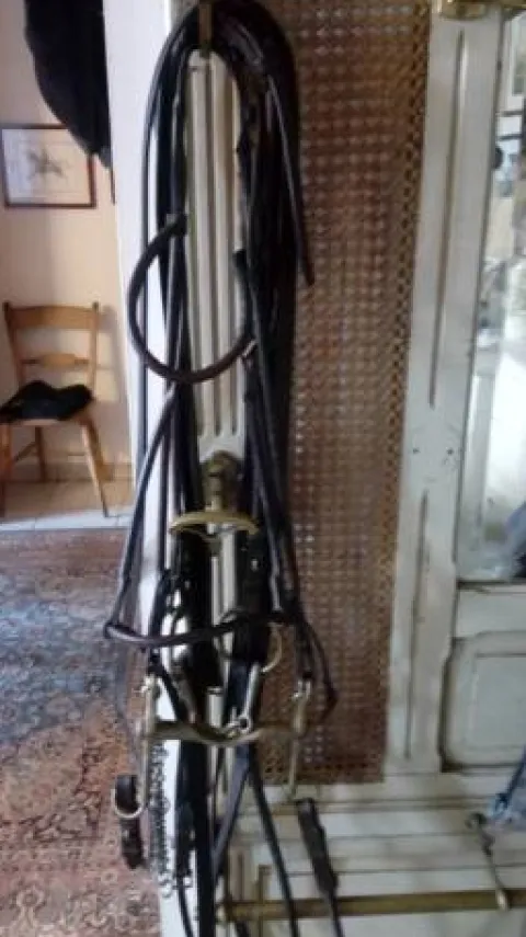 Bride cuir rond Schiltz très rare en parfait état . Mors de bride avec canon tournant il peut ainsi bouger dans la bouche si besoin .Couleur châtaigne .Schiltz faisait de la sellerie comparable à celle de Hermes (cf Google pour infos) .Réglable en têtière ,beaucoup de trous ,donc de tailles possibles