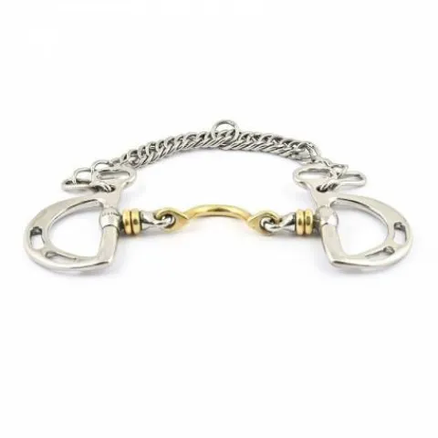 Avec le mors Goyo Aga à rouleaux avec passage de langue, vous bénéficiez d’un embouchure de qualité en German Silver, un alliage reconnu pour son effet décontractant. Sa double brisure soulage la pression sur le palais de votre cheval et le rend plus ergonomique. De plus, les rouleaux contribuent à un effet décontractant supplémentaire. Ce mors convient parfaitement pour un cheval que vous souhaitez alléger dans le contact tout en ayant une attitude relevée. Pour garantir un confort optimal à votre cheval, pensez à bien rincer le mors après chaque utilisation pour éviter tout dépôt de résidus pouvant causer un inconfort.