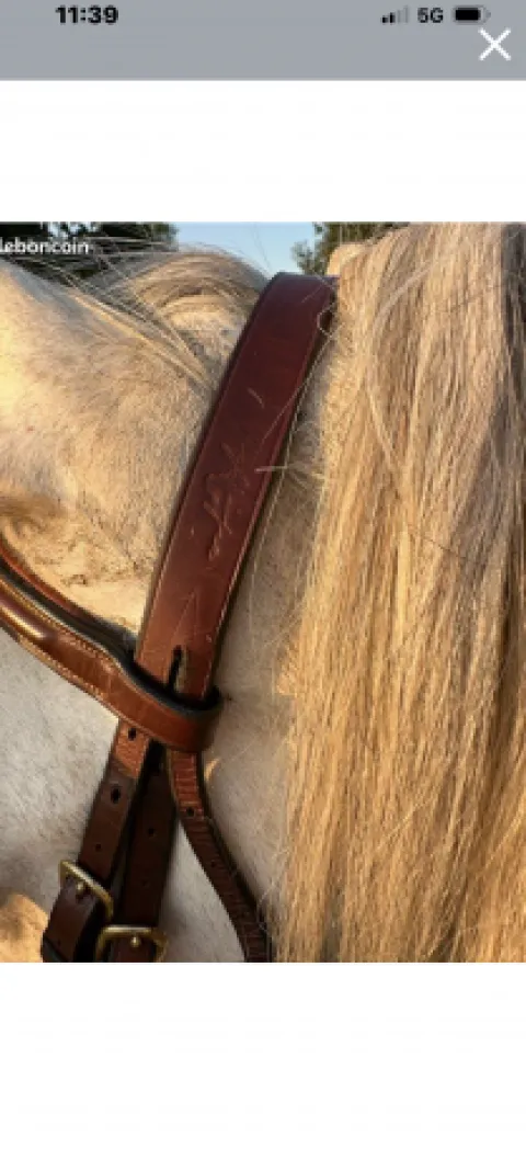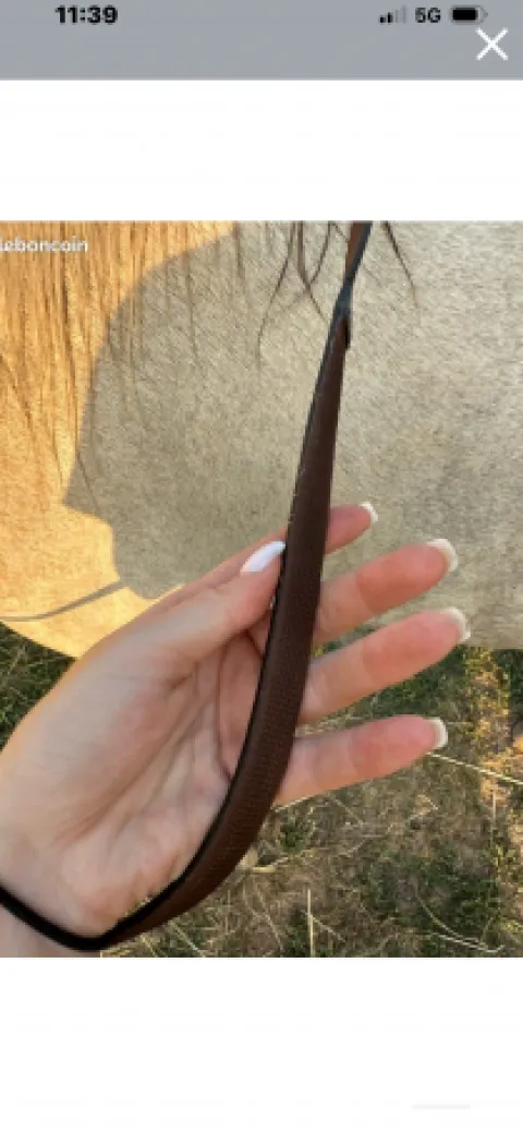 Vend Bridon de la marque équipe emporio Très bon état Couleur marron Muserole croisée Vendue avec paire de rênes de la même marque en cuir doublé caoutchouc très souple