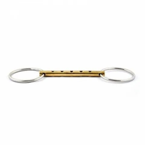 - Action forte grâce à son canon fin et ses trous : Contrairement aux mors à anneaux classiques, ce mors possède un canon fin et des trous qui renforcent son action. Son effet est donc relativement puissant, ce qui en fait un choix parfait pour les chevaux nécessitant une action sans effet de levier.