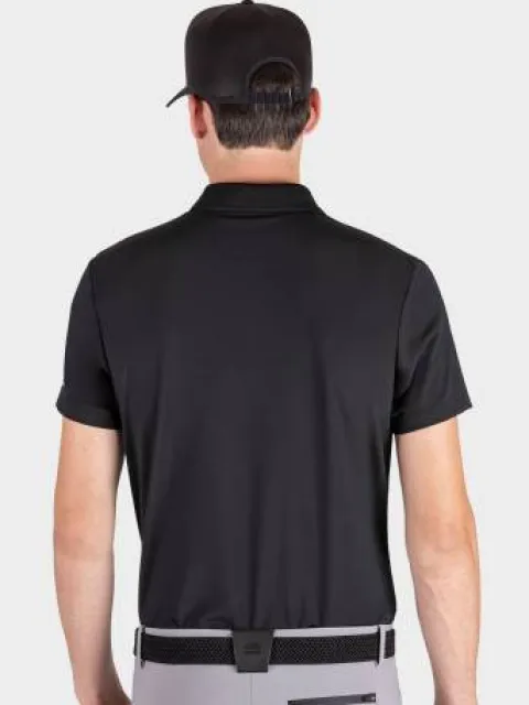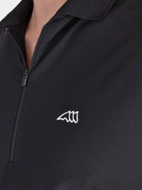 - Polo de loisir bleu marine pour homme avec ouverture frontale zippée, logo Equiline imprimé en blanc sur la poitrine et mot Equiline sur la manche.