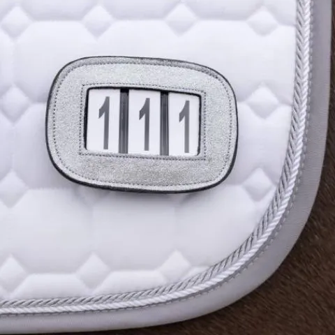 Le porte numéro Shine de QHP, orné de paillettes, est conçu pour apporter une touche de style à vos tenues de concours tout en assurant une fonctionnalité optimale. Vendu à l’unité, ce modèle se fixe aisément au bridon, au tapis ou à la selle grâce à son épingle à nourrice et son velcro, facilitant ainsi son utilisation lors de vos compétitions.