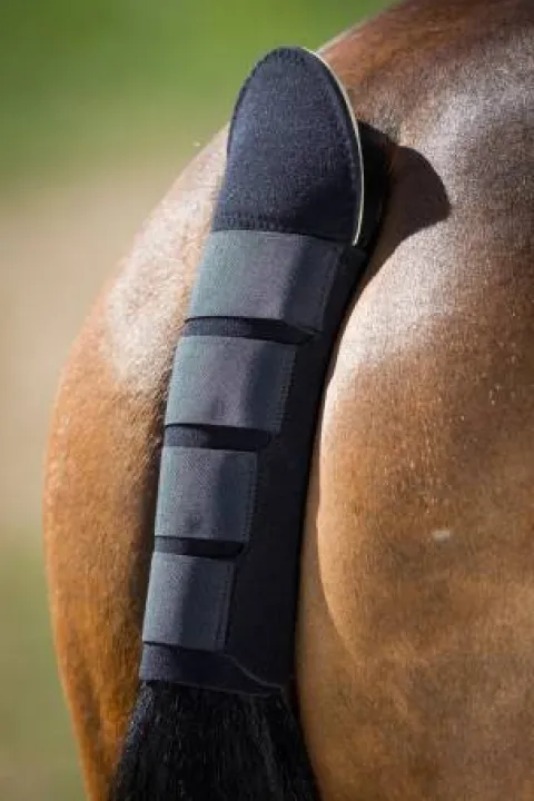 Le protège queue en néoprène HFI est conçu pour assurer une protection optimale de la queue de votre cheval durant les déplacements.