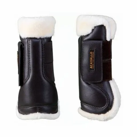 Les guêtres Acavallo en cuir Eco avec laine synthétique se caractérisent par une double bande Velcro qui empêche la protection de glisser mais garantit en même temps une liberté de mouvement maximale pour le cheval. La partie intérieure en laine écologique évite au contraire tout frottement, protège la peau et absorbe les éventuels chocs.
