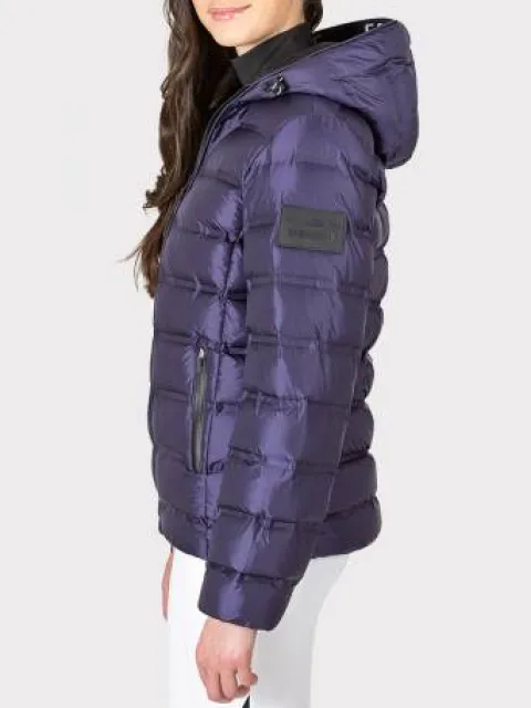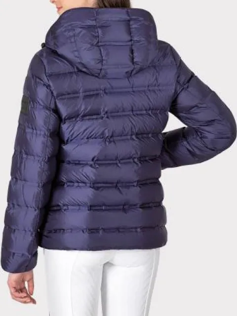 Veste en duvet bleu cobalt pour femmes avec rembourrage en plumes, ultra chaude et confortable.