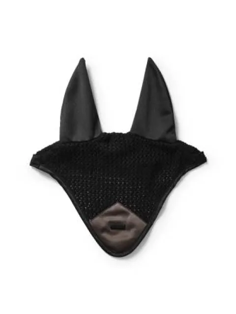 Bonnet anti-mouches crocheté dans une belle couleur noir. Décoré d’un écusson en satin marron mocha sur le devant, une bordure noire et d’un badge Equestrian Stockholm en noir.