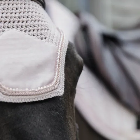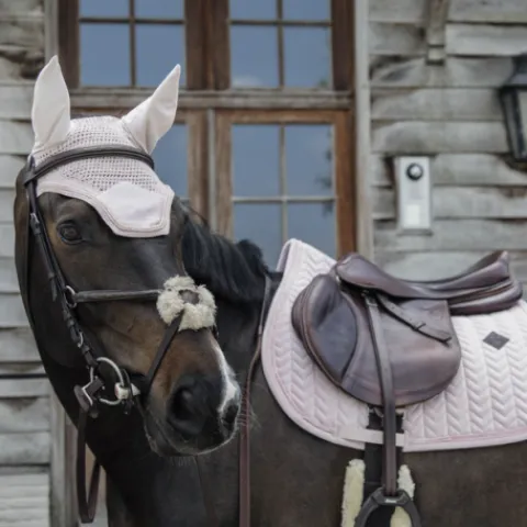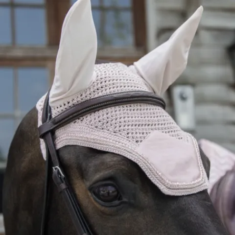 Notre Fly Veil Velvet effet velours côtelé combine le look américain moderne et l’expertise de Kentucky Horsewear. Ce bonnet est crocheté à la main pour une meilleure durabilité. Il possède des détails en velvet très élégants. Le tissu autour des oreilles est extensible et ajusté. Il protège les oreilles du cheval contre les mouches pendant le travail. La partie au niveau du cou est plus longue et ne peut donc pas glisser. Ce bonnet n’a pas de logo visible, le cavalier ou les sponsors peuvent donc broder leur propre logo. Lavage à la main uniquement.