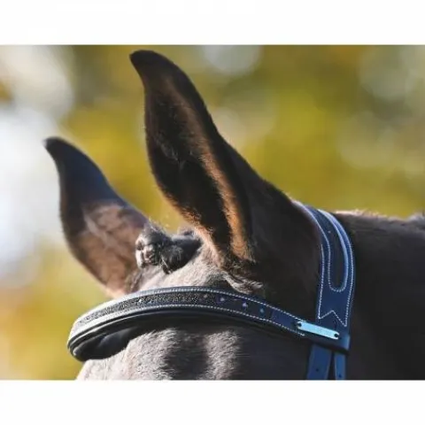 - Le frontal, la muserolle et la têtière sont incrustés de cristal Shiny pour plus d’élégance.