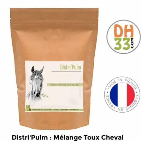 Distri’Pulm aliment complémentaire pour l’hygiène des voies respiratoires du cheval (toux, emphysème). Produit 100% naturel à base de plantes, conviendra également en phase de préparation pour les chevaux de sport. Pot de 400g ou 1kg