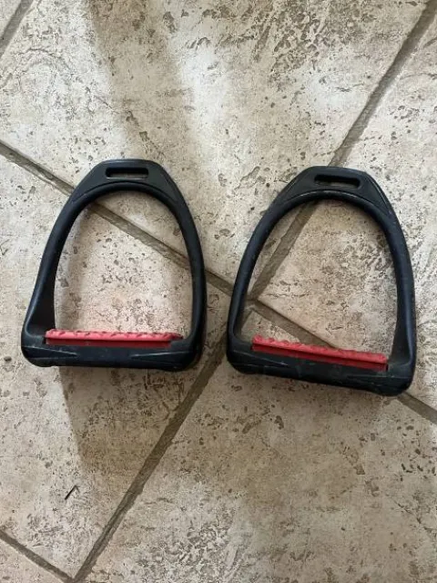 Je vend des étriers de la marque Compositi de couleur rouge.