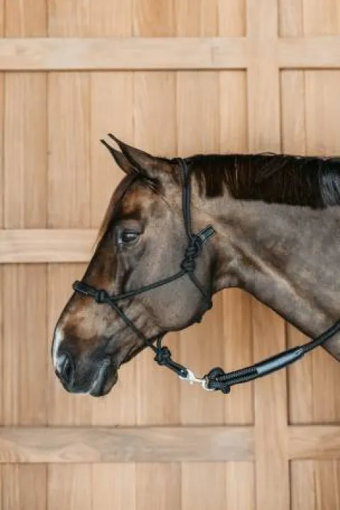 Doté d’accents en cuir sur le nez et à l’extrémité de la corde, ce Licol allie fonctionnalité et style.
