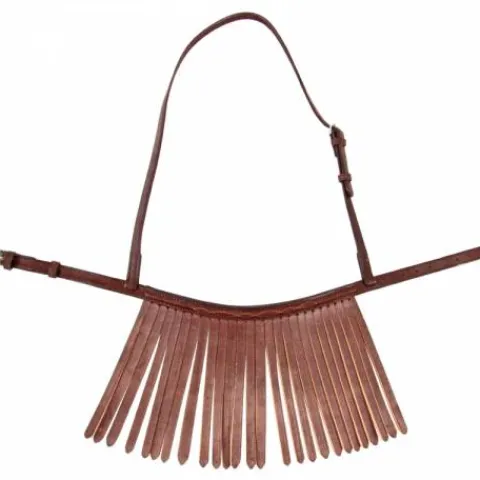 Conçue entièrement en cuir, cette muserolle à franges est parfaite pour les chevaux sensibles aux projections.