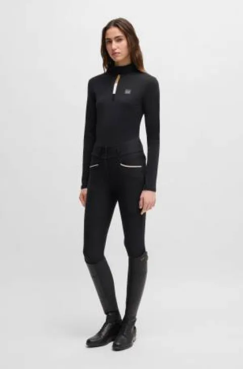 Découvrez le polo d’entraînement manches longues MINOU de Boss Equestrian, un choix idéal pour les passionnés de sports équestres. Sa conception en matière ultra-légère et brossée offre un confort remarquable durant vos séances, tandis que le mélange de tissus extensibles permet une liberté de mouvement optimale. Ce haut respirant et à séchage rapide vous maintient au sec et à l’aise, même lors d’efforts intenses. La fermeture éclair pratique facilite l’enfilage, et le patch logo discret ajoute une touche d’élégance à votre tenue.
