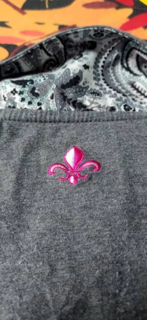 Très bon état. Jolis détails fleurs dans le col et sur le logo (côté gauche).
