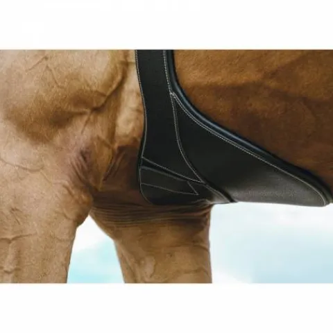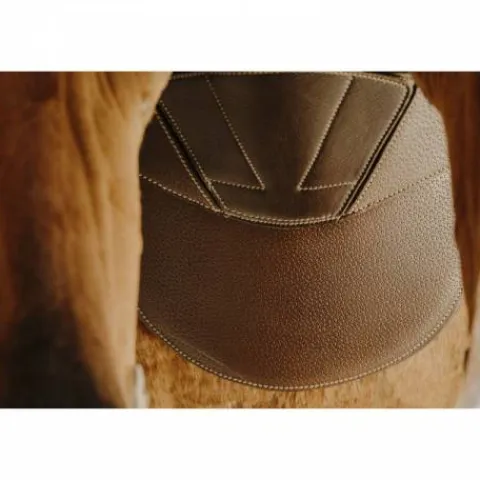 Sangle bavette en cuir de buffle grainé et doublé en cuir vachette, existe en deux coloris noir ou havane.