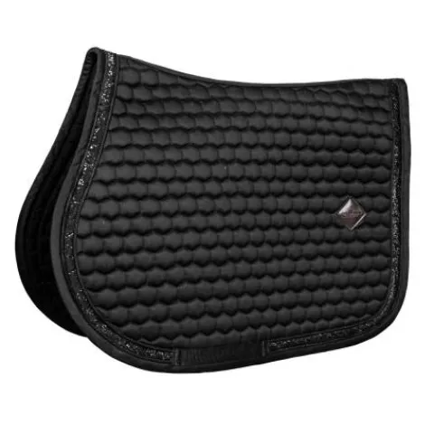 Avec sa bande pailletée élégante, le Tapis de Selle Glitter Band apporte une touche de sophistication à votre cheval. Son design exclusif attire le regard, que ce soit à l’entraînement ou en concours. De plus, il offre un espace généreux pour la broderie personnalisée, vous permettant d’ajouter une touche personnelle.