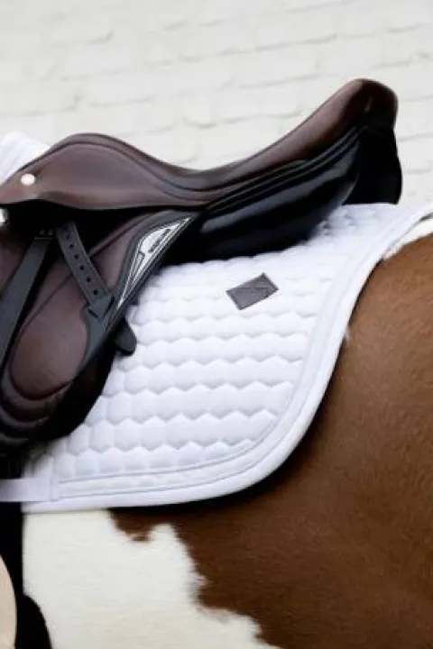 Fabriqué en coton-polyester à motif nid d’abeille, ce tapis assure un séchage rapide et un confort optimal même lors des entraînements intensifs. Son rembourrage intérieur est respirant, offrant un excellent amorti entre la selle et le dos de votre cheval. Le logo Kentucky brodé en cuir végan premium garantit une qualité visible de loin.