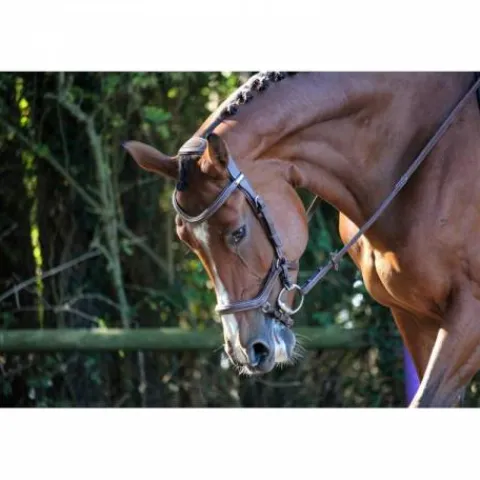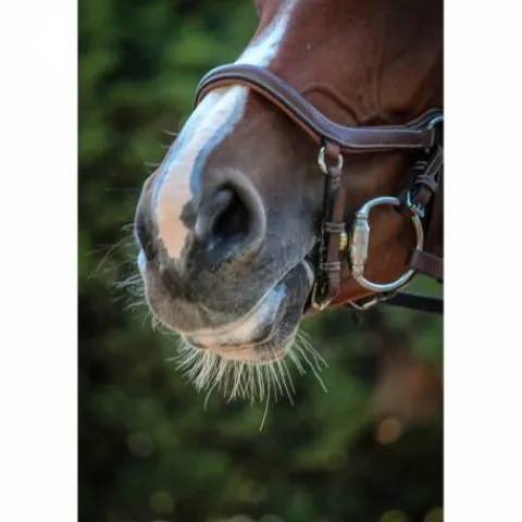 - Grâce à sa têtière anatomique et à son attache de muserolle décalée, ce bridon élimine les points de pressions et les frottements désagréables pour votre cheval.