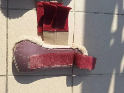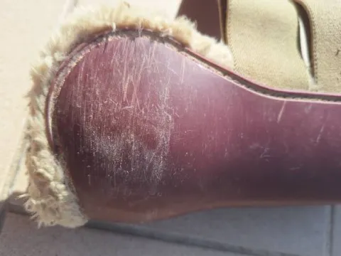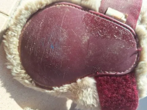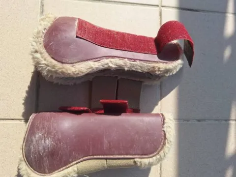 Je vends un ensemble guêtres + protèges boulets bordeau avec moumoute beige de la marque NORTON.