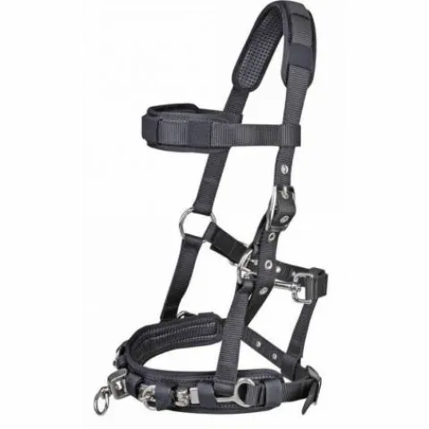 Filet caveçon en nylon avec muserolle et têtiere réglables de la marque HKM