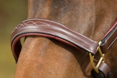 La muserolle rembourrée et doublée de cuir souple, ornée d’une broderie décorative, ajoute une touche d’élégance supplémentaire à ce licol. Elle est également ajustable pour s’adapter parfaitement au museau de votre cheval. De plus, la sous-gorge est complètement amovible, permettant ainsi un pansage plus pratique et facilitant le nettoyage du licol.