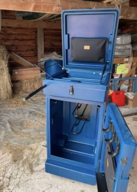 Le couvercle et la porte fermés sont pourvus d’un joint afin d’offrir une étancheité complète et peuvent recevoir un cadenas.