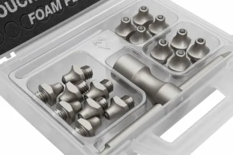Kit de crampons FASTUDS® filetage M10. Taraud intégré au crampon : vous n’avez plus besoin de refaire les mortaises avant de cramponner ! Vissez directement vos crampons, le filetage se répare en même temps. Vous cramponnez 2 fois plus vite ! Idéal pour les compétitions.