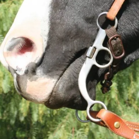 - REMARQUE: Ce mors rouille lorsqu’il est exposé à l’humidité. Cela crée un goût sucré dans la bouche du cheval et favorise la salivation.