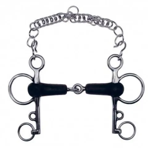 Mors pelham conçu en inox et caoutchouc, ce modèle est équipé de branches longues pour une meilleure répartition des pressions sur la bouche du cheval.