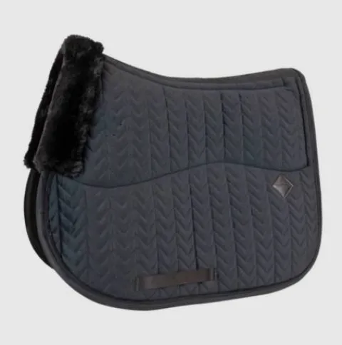 Le tapis de selle Skin-friendly velvet est disponible en format obstacle et dressage. Il n’y a qu’une lanière pour passer la sangle, donc pas de sangles gênantes devant la selle. Le logo Kentucky est placé légèrement plus haut, ce qui laisse de la place pour la broderie.