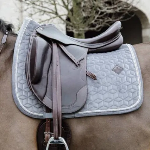 Le tapis de selle Saddle Pad Velvet très élégant avec son effet velours et son passepoil à double torsion. Ce tapis est conçu pour le saut et offre un excellent amorti entre le dos du cheval et la selle, tout en protégeant contre les frottements. Le tapis de selle n’a pas de sangle gênante pour attacher la selle, seulement une sangle en nylon pour la sangle. Le tapis de selle comporte un logo en cuir subtil, tout en offrant suffisamment d’espace pour broder le tapis de selle si nécessaire. Il est lavable en machine à 30°, pas de sèche-linge.