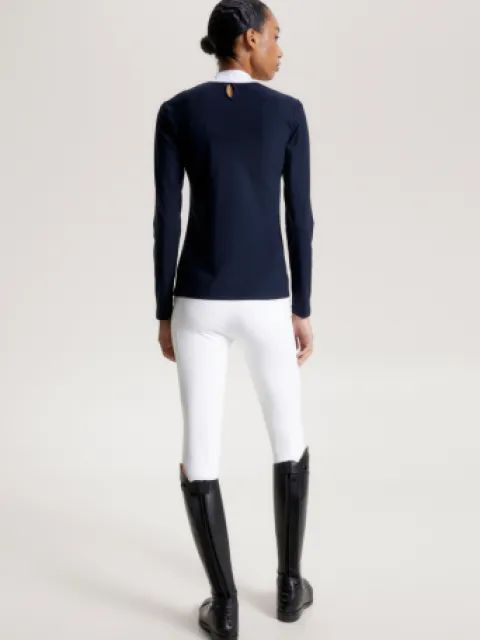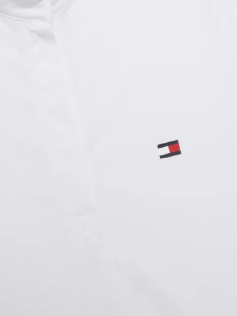 - Le logo Tommy Hilfiger sous la forme du drapeau emblématique sur la poitrine, la bande « Global Stripe » sur l’ourlet des manches et le tissu contrasté sur les épaules et les ourlets des manches complètent le look.