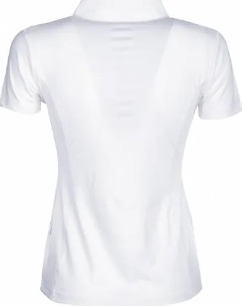 Polo de concours blanc à manches courtes, idéal pour les compétitions équestres