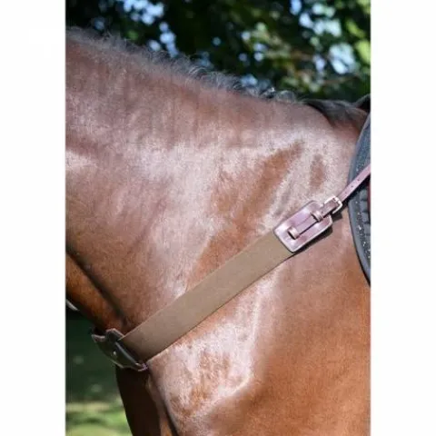 - La bricole élastique Jump’in se place sur le poitrail du cheval, elle est reliée à la selle par deux mousquetons et l’empêche ainsi de reculer.