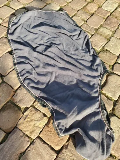 Vends couvre rein equitheme polaire, taille 125 ( pas d’etiquette) gris avec liseré rose pâle.