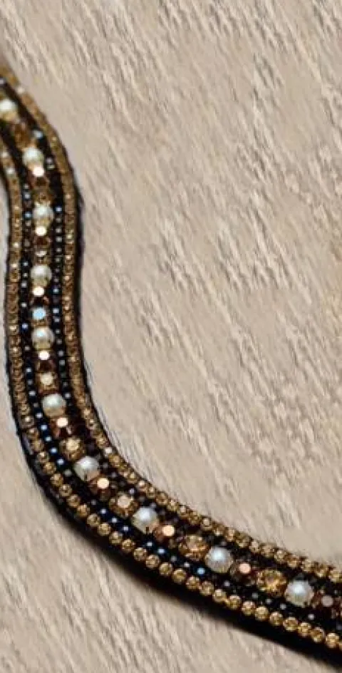 Un frontal élégant orné de strass noir, bronze et or pour sublimer l’attelage