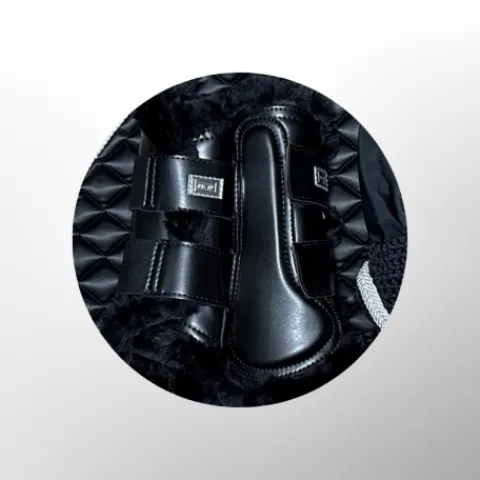 - L’intérieur respirant en peau de mouton protège l’intérieur des jambes du cheval, étant doux et confortable, tout en offrant une absorption des chocs et une bonne répartition de la pression.