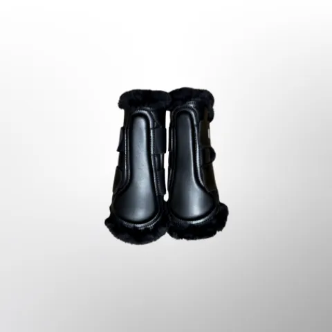 Guêtres de dressage antérieurs confortables doublées de fourrure pour votre cheval avec logo EQUICO argenté en relief.