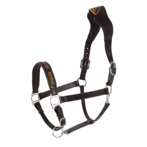 La muserolle, recouverte de cuir de haute qualité et agrémentée de détails en caoutchouc, assure un confort et une protection supplémentaires. Les boucles en acier inoxydable, robustes et durables, garantissent que ce licol sera un accessoire fiable au fil du temps.