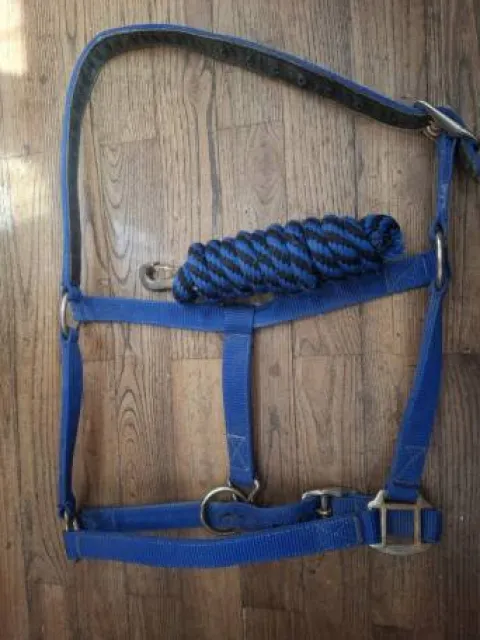 Licol et longe bleu taille full avec présence de rouille sur les anneaux