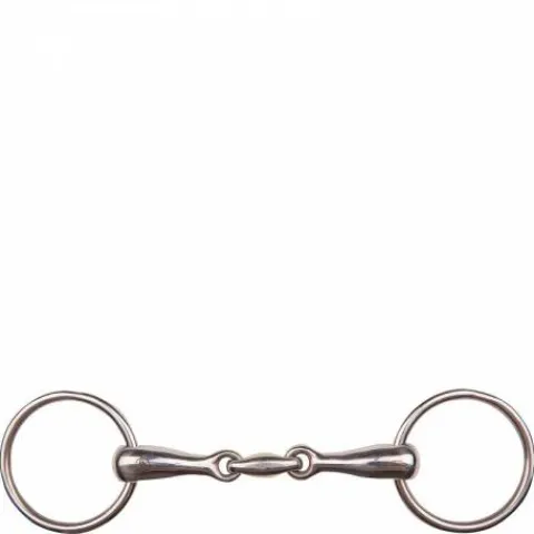 Mors en inoxydable massif à double brisure, conçu pour offrir une meilleure distribution de la pression sur la langue et le palais du cheval.